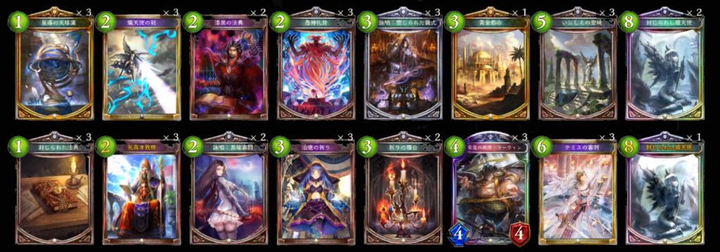 『封じられし熾天使』のカウントを進め続けて特殊勝利を目指すデッキ。昔はガチデッキだったけど、PP8で『封じられた熾天使』を出したときが隙だらけなので今では完全にネタ。