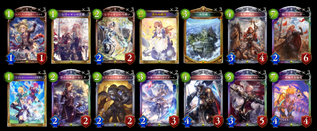 レヴィオン系のフォロワーと天空城を混ぜたデッキ。前半から攻め立てられるので速攻勝ちも狙える。