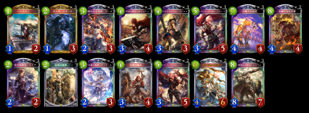 タイプ:指揮官のフォロワーを出したときに『ヘヴィーナイト』を出す『鉄壁の城塞』で横並べしていくデッキ。